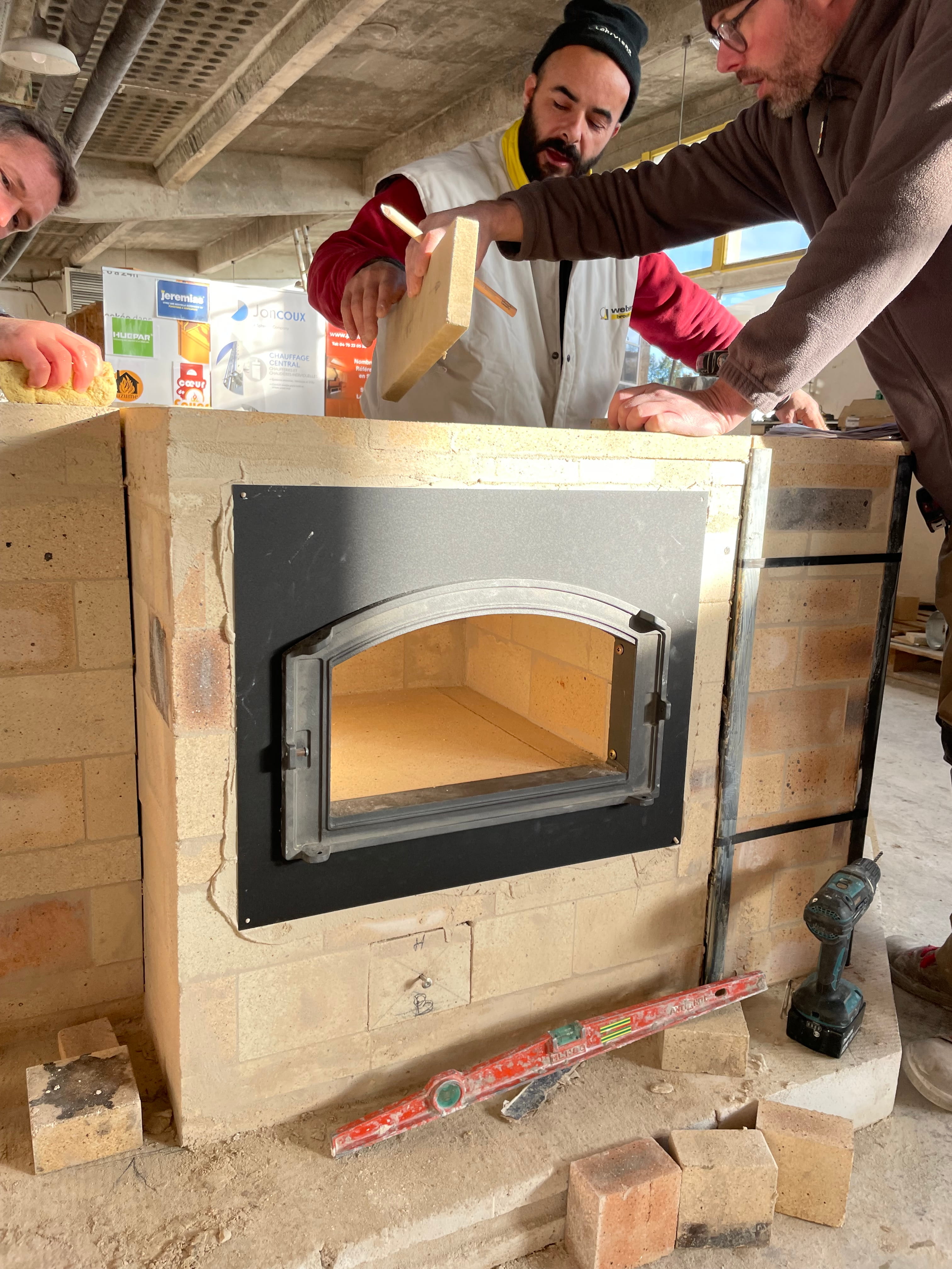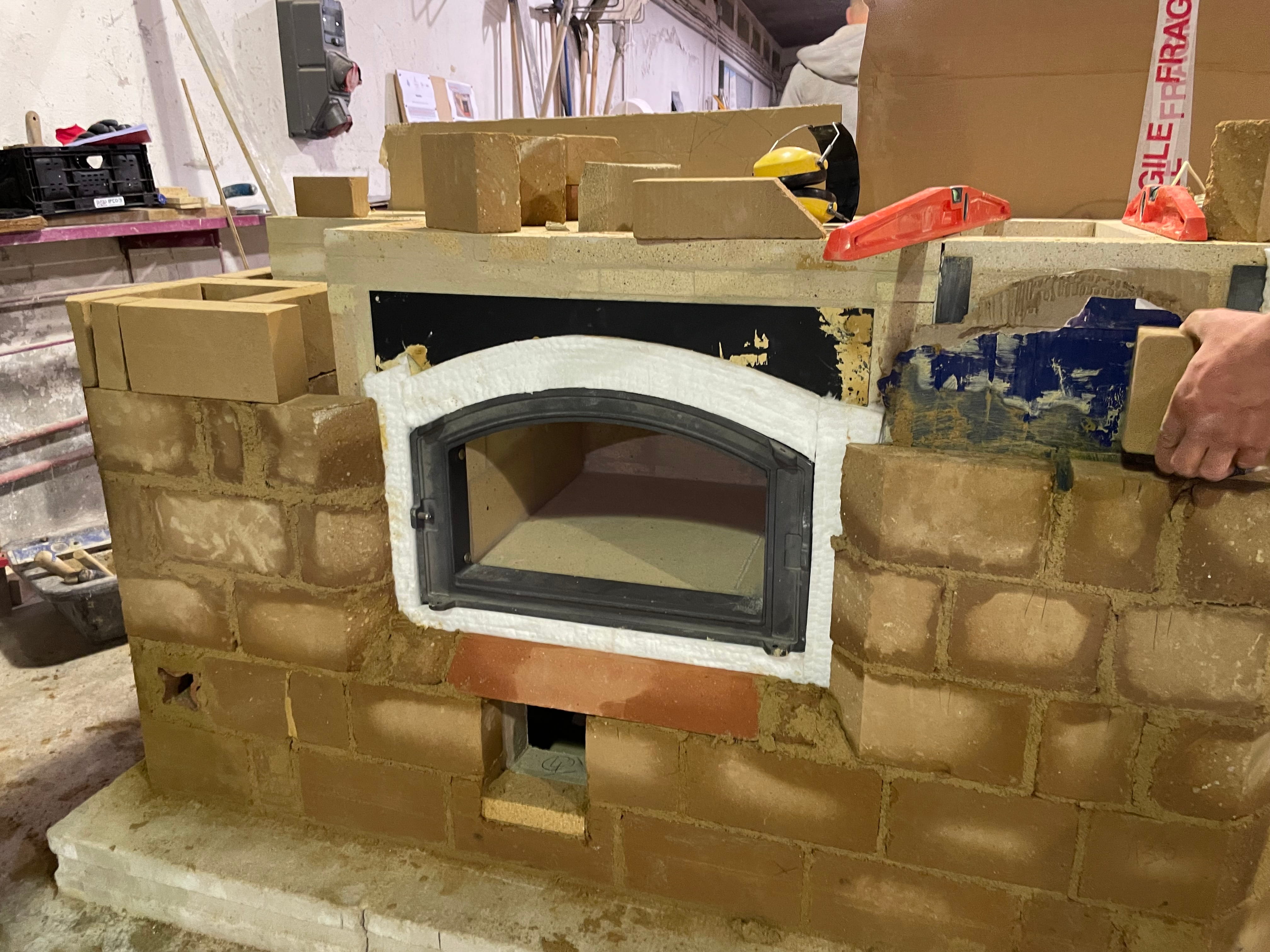 Durant ce module de formation, les apprenants ont installé leur aire de travail, implanté un ouvrage, réalisé le socle, découpé et maçonné un foyer avec fentes d’arrivée d’air, posé une porte en embrasure posé un four blanc en tôle, posé une plaque de cuisson.