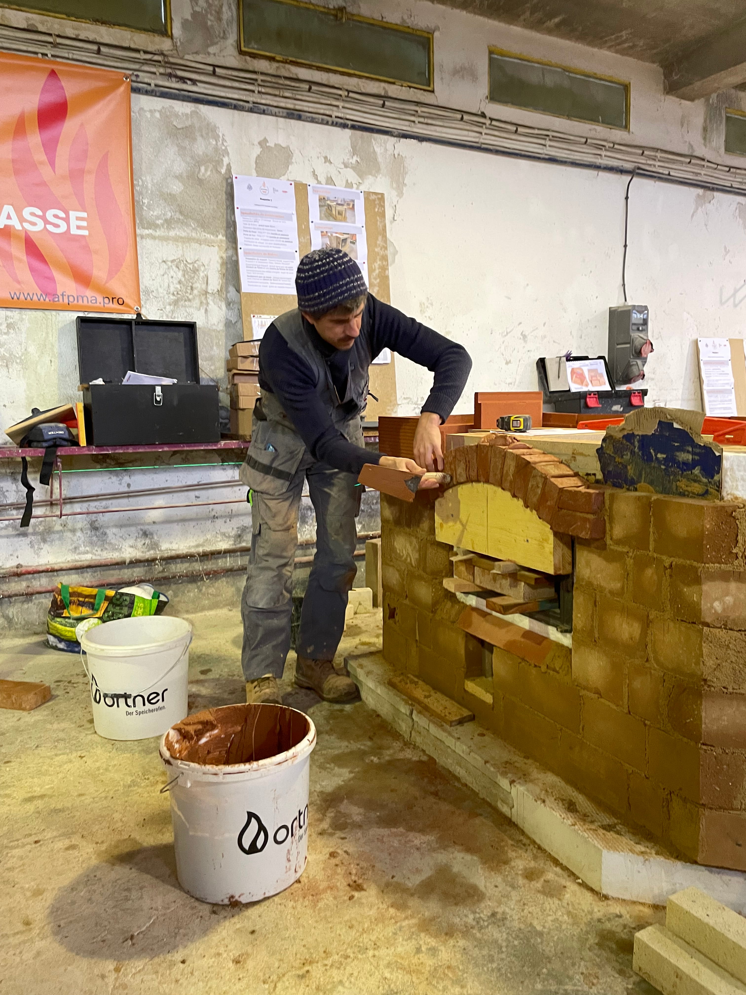 Différents modules de formation se sont succédé depuis novembre 2025 à raison d’un rythme d’une semaine de formation par mois : maçonnerie réfractaire, maçonnerie d’habillage, fumisterie.