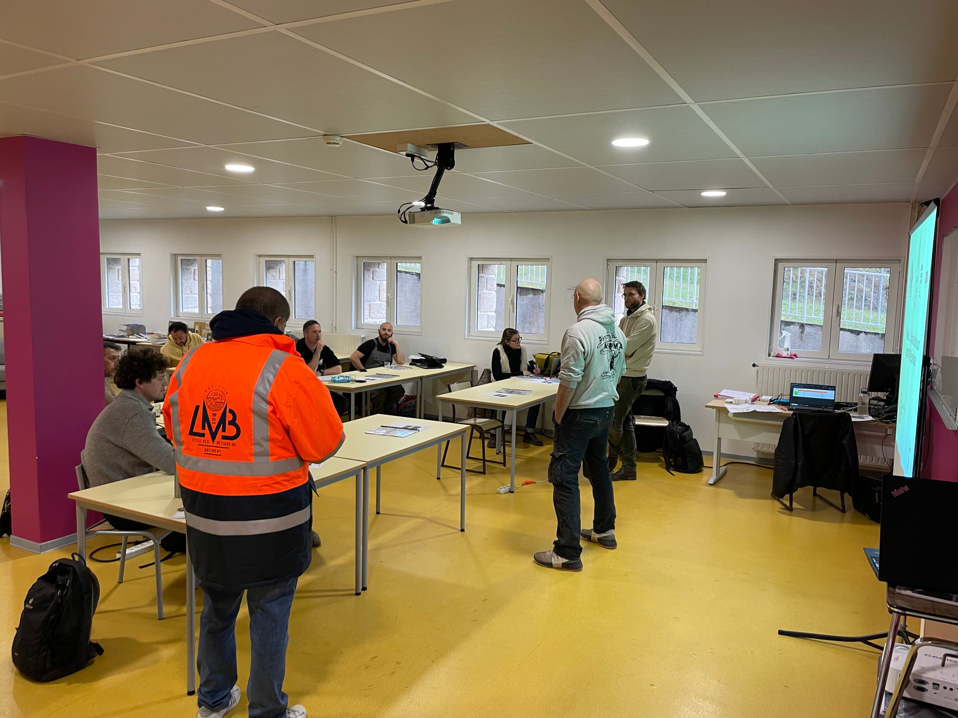 La formation a été lancée début novembre, avec 10 à 12 participants venant de toute la France. La majorité des personnes ont des profils venant du bâtiment (tailleur de pierre, enduiseur, maçon…); mais la formation compte aussi des personnes en reconversion complète.