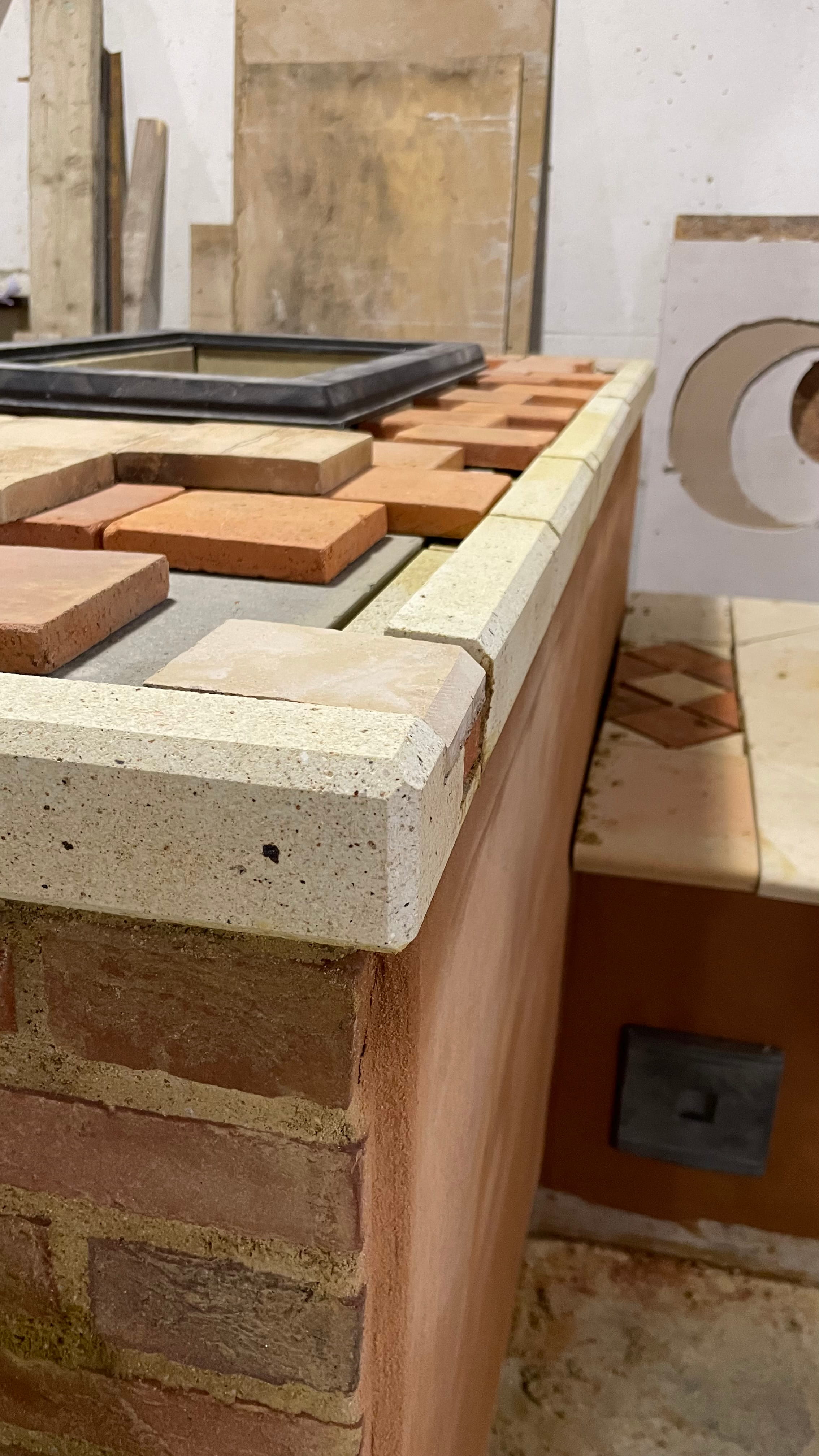 Encore une fois, ce fut un module très dense où les apprenants ont pu réaliser un habillage en brique apparente, un habillage en dalle et/ou brique à enduire, un enduit pour poêle de masse; réaliser la pose d’une porte en applique et en embrasure, créer des gabarits, gérer les étanchéités et l’espace de dilatation entre le cœur et l’habillage…