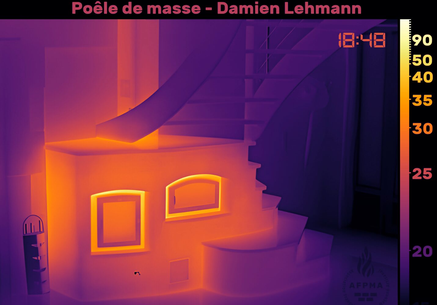 Image infrarouge d'un poêle de masse diffusant sa douce chaleur