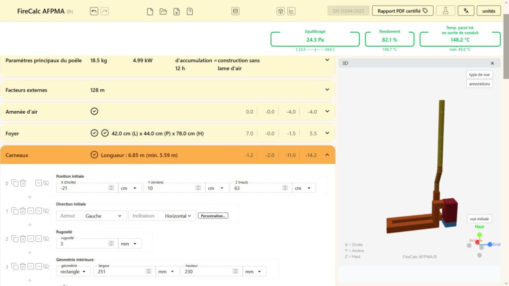 ​L’évolution des exigences des performances environnementales et énergétiques des appareils de chauffage à combustible solide, type bois, obligent les professionnels à fournir des garanties. Ainsi, pour certifier les performances d’un poêle de masse maçonné construit in situ selon la NF EN 15544, le code des impôts demande à réaliser un calcul normalisé. Cela apporte des garanties quant au fonctionnement optimal de l’appareil.